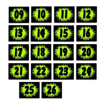 - Made of durable, waterproof vinyl, these bright, fluorescent numbers demand attention!